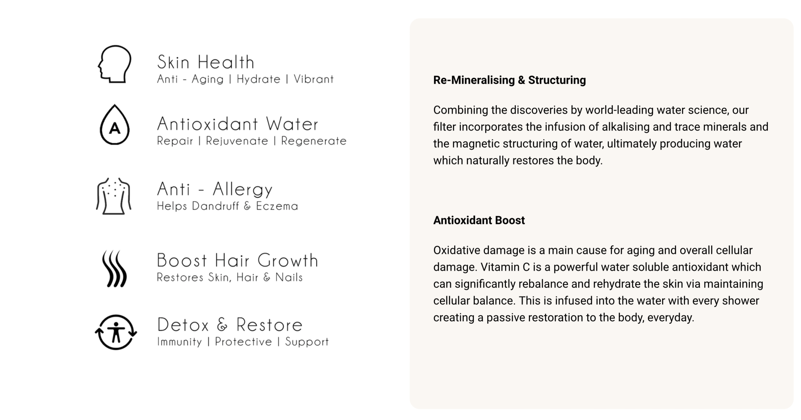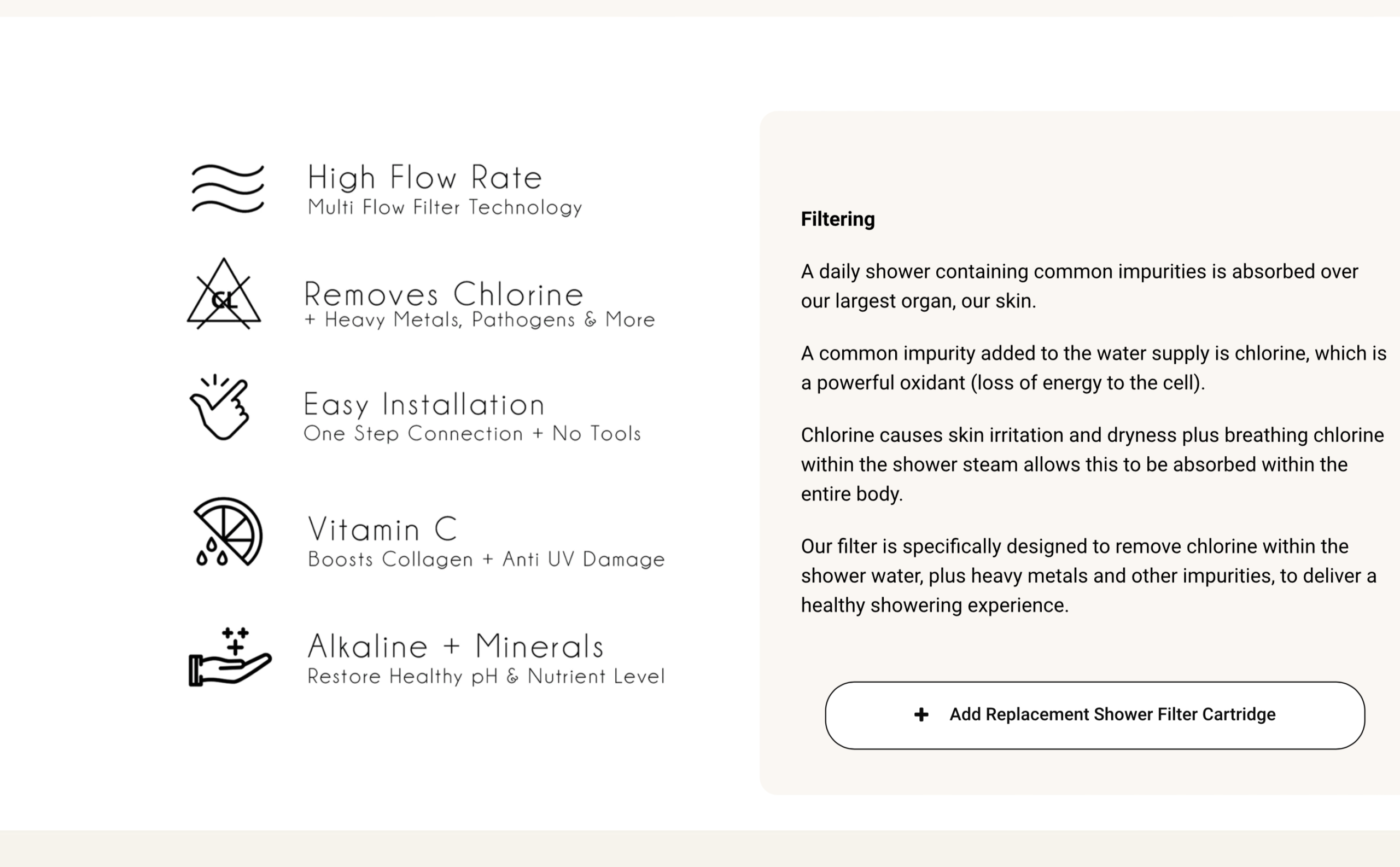 Our filter is specifically designed to remove chlorine within the shower water, plus heavy metals and other impurities, to deliver a healthy showering experience.